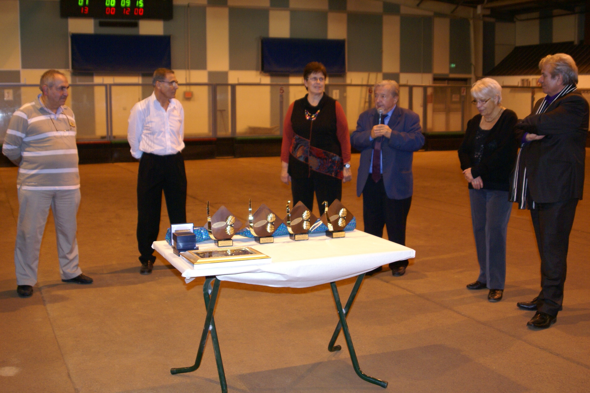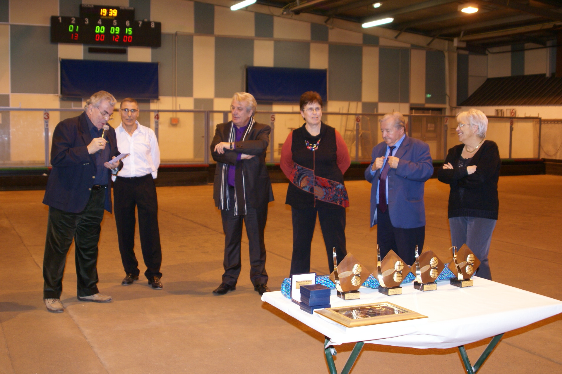 25ème anniversaire du boulodrome couvert d’Echirolles. Une soirée d’anniversaire a été organisée par le comité de gestion du boulodrome couvert d’Echirolles pour fêter ses 25 ans de fonctionnement. De nombreuses personnalité y assistaient, invitées apr Michel Gallego, président du comité de gestion: Philippe Coquet (président de la FFSB), Michel Gentile (président du CBDI), Guy Michon (président du secteur Alpes 38), Claude Siraponian (président du CB Echirolles), Gilbert Biessy (ancien député et maire d’Echirolles), Renzo Sully (actuel maire d’Echirolles), et de nombreuses associations boulistes voisines représentées par leurs présidents et invités. Après une partie de boules « acharnée », les convives ont écouté les discours des personnalités retraçant les belles heures des coupes de Noël, l’activité du boulodrome et l’implication des élus durant toutes ces années. Un des moments forts a été l’annonce par Renzo Sully de la décision municipale de réfection des jeux en 2014. Michel Gallégo a ensuite invité l’assistance à se réunir autour d’un pot convivial et d’un casse-croûte très copieux.